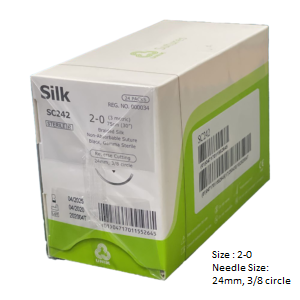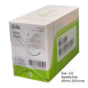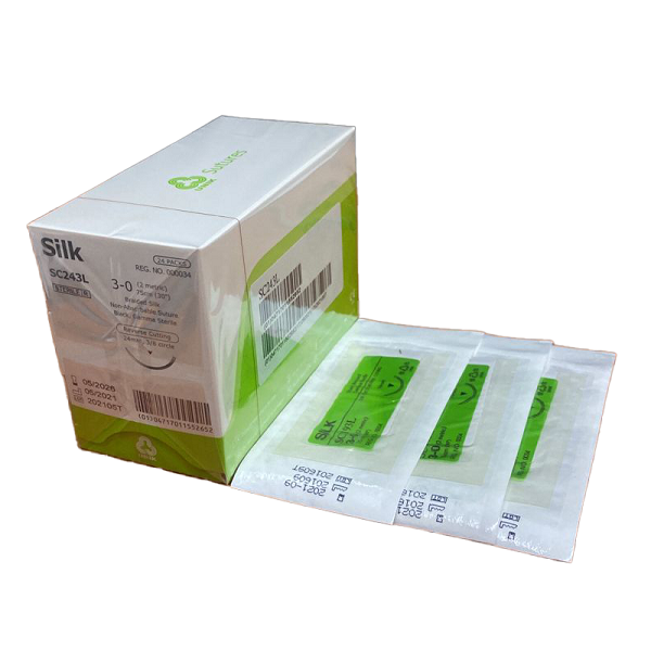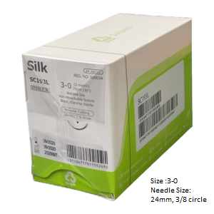 SILK BLACK WITH NEEDLE: The sutures are braided, nonabsorbable, sterile, non-mutagenic surgical sutures composed of natural silk fibers called fibroin. The sutures elicit a minimal acute inflammatory reaction in tissue, which is followed by gradual encapsulation of the suture by fibrous connective tissue. Silk is intended to be for general soft tissue approximation and/or ligation, including use in various surgical surgery, such as cardiovascular, ophthalmic and neurological procedures.