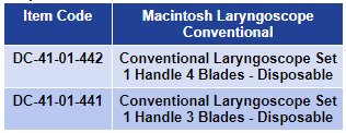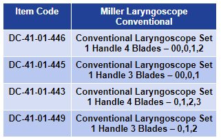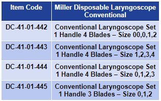 Laryngoscope Miller (Straight) Disposable Conventional Set