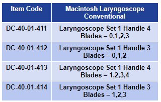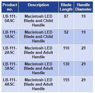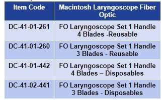 Laryngoscope Macintosh (Curve), Reusable Fiber Optic Set