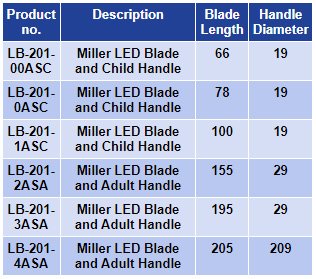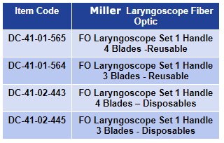 Laryngoscope Miller (Straight), Reusable Fiber Optic Set